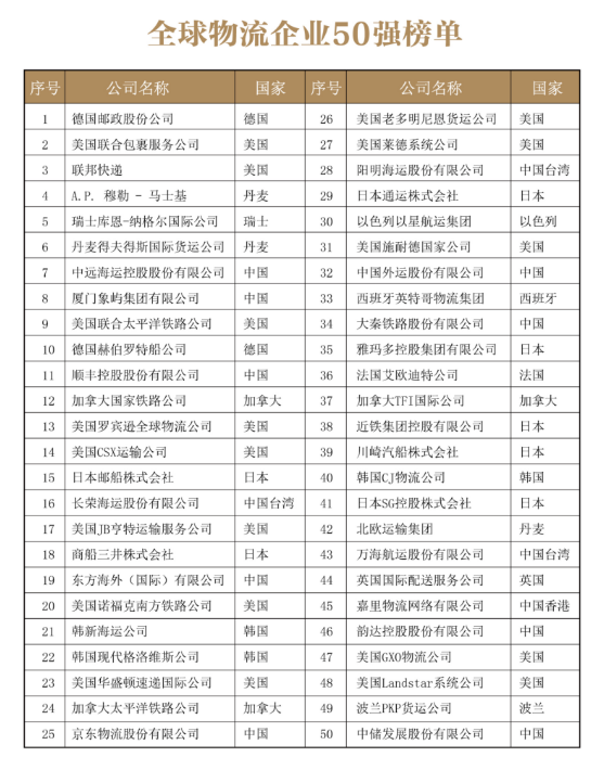 “全球物流企业50强”榜单正式发布